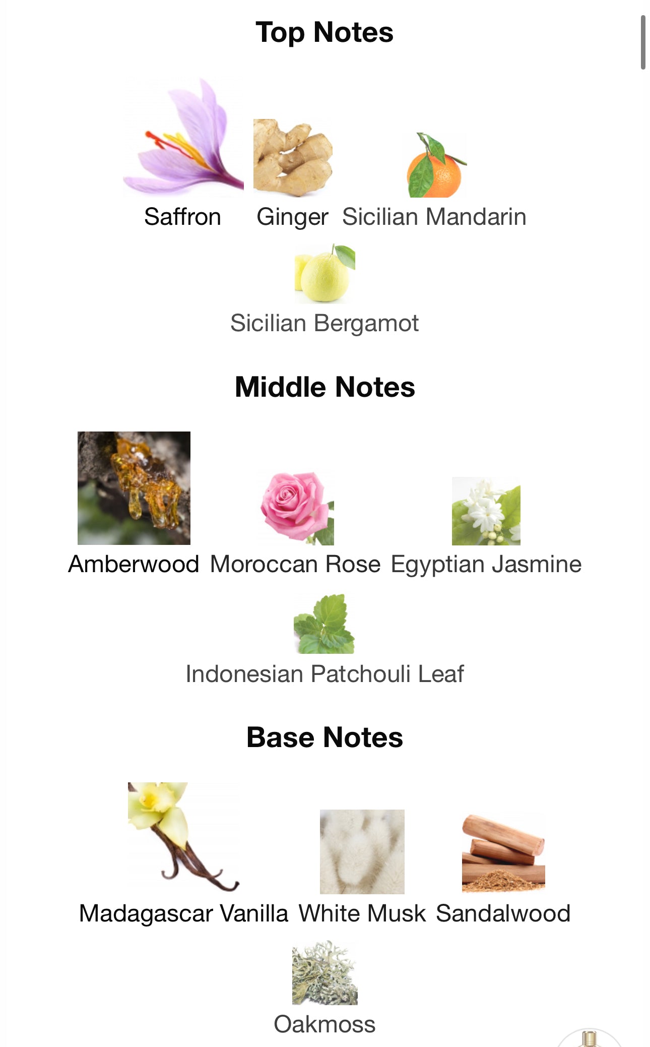 - Base Notes: Madagascar Vanilla, Sandalwood, White Musk and Oakmoss