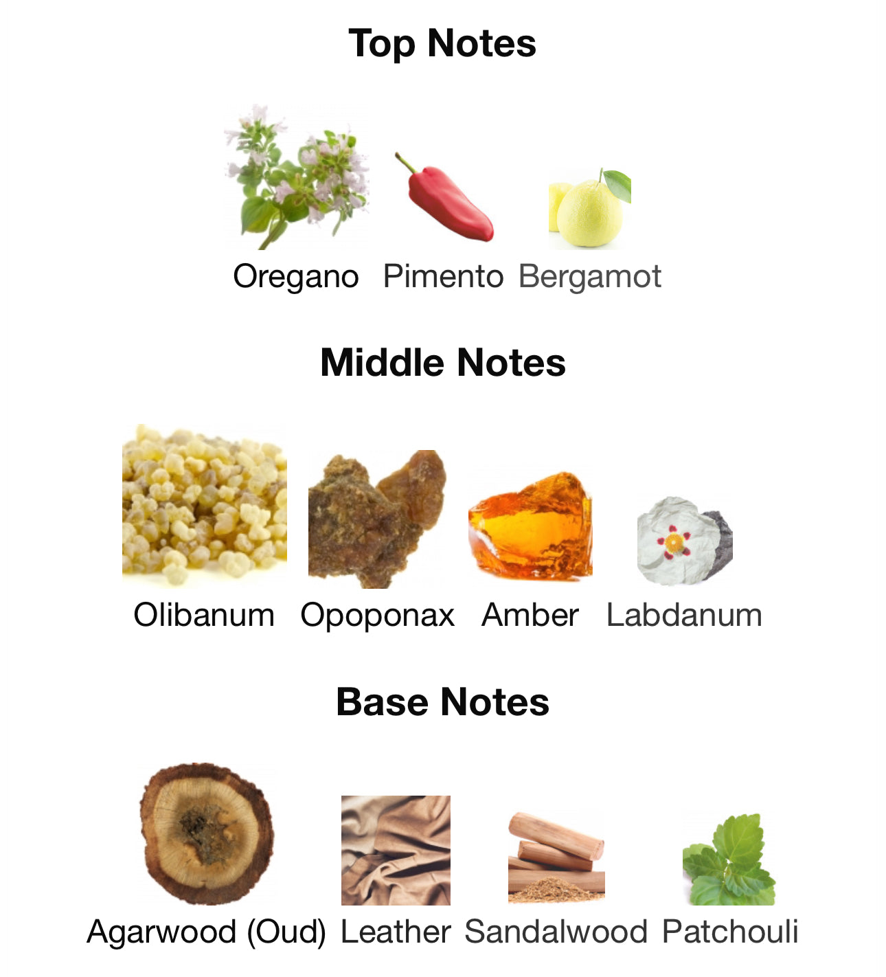 - Base Notes: Agarwood (Oud), Leather, Sandalwood, Patchouli