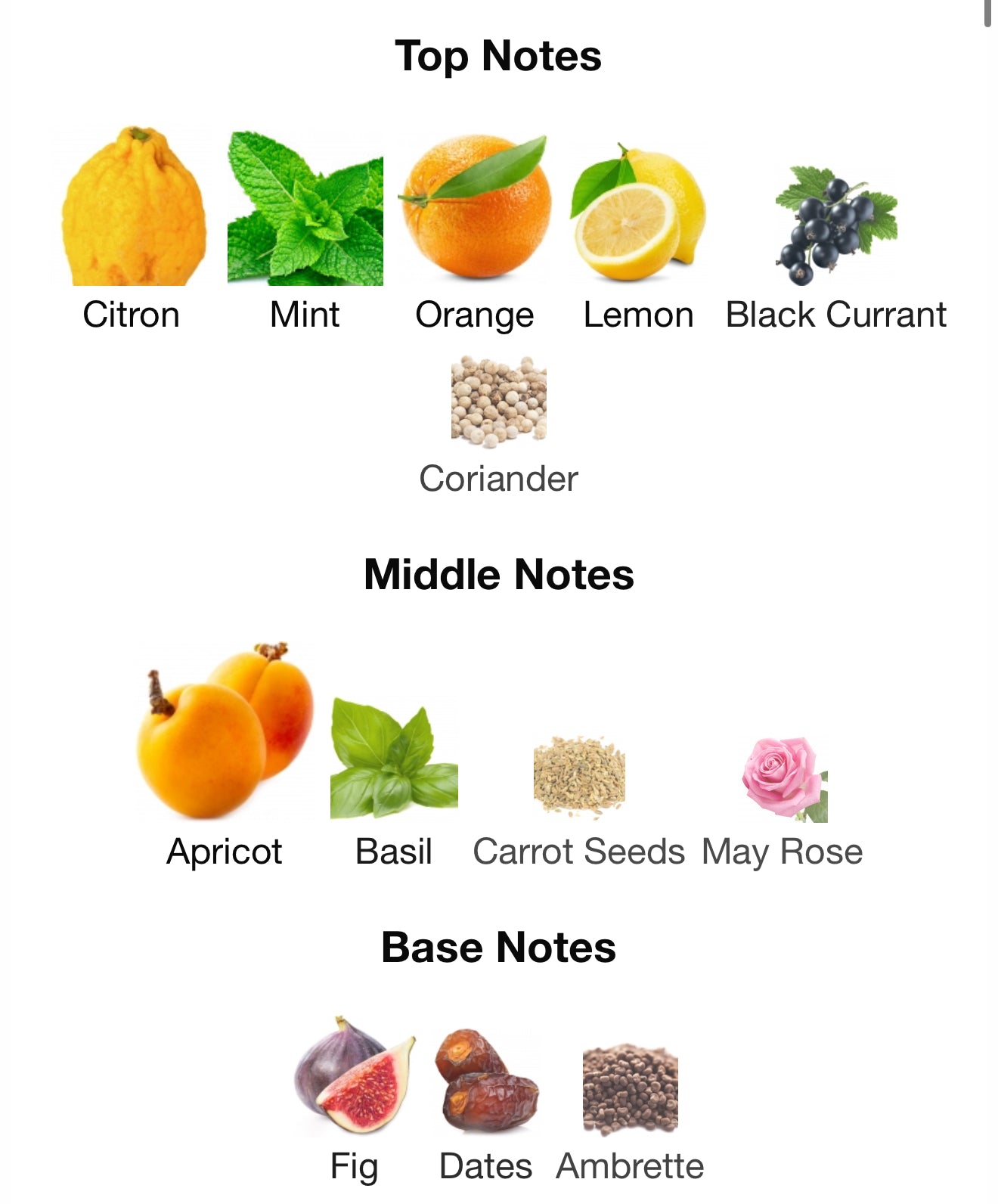 Top Notes: Blackcurrant, Citrus accords, Carrot seed